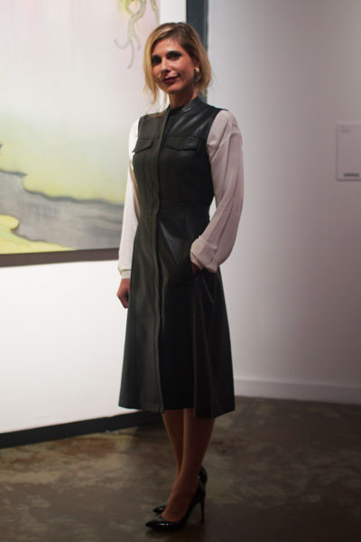Si vous reconnaissez ce nom, c’est parce Sara est la soeur du sculpteur David Altmejd… celle qui lui a inspiré une des oeuvres qui a fait le plus couler d’encre pendant la dernière exposition du MAC consacrée à l’artiste. Quand je l’ai aperçue, je ne savais pas qui elle était, mais j’ai immédiatement été attirée par son fourreau champagne signé Vivienne Westwood. J’adore la couleur, mais c’est avant tout les jeux de plissés propres à la marque anglaise qui m’émerveille!
