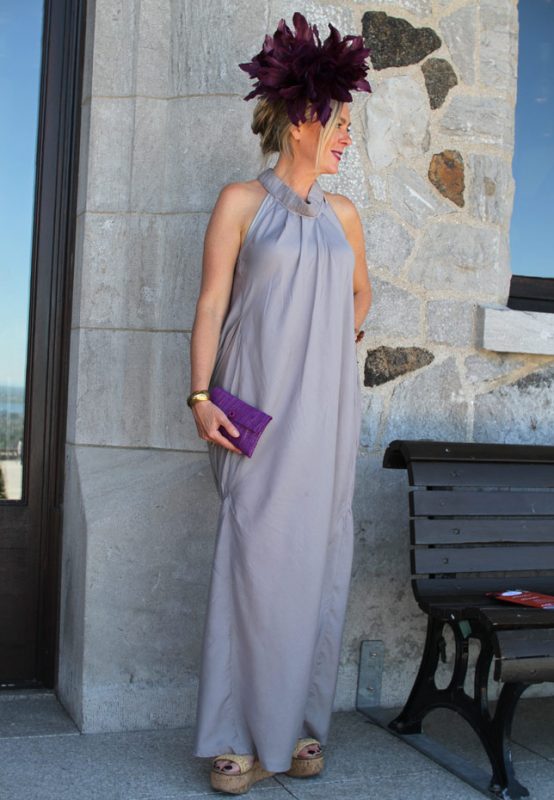Quand j’ai vu Ana, j’ai d’abord aimé le mariage du prune et du gris. Puis, en m’approchant, je suis tombée en amour avec son superbe bibi déniché dans une friperie à New York! La robe, quant à elle, vient d’Argentine.
