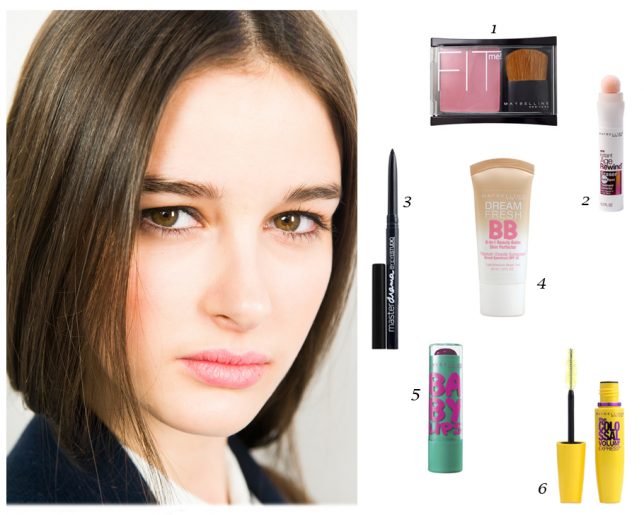 On termine ce look avec une petite touche de fraîcheur obtenue grâce au Fard à Joues Fit Me (en Deep Rose), pour les pommettes rosées… et au Baume à Lèvres Baby Lips (en Grape Vine) pour les lèvres de poupée (1 & 5).