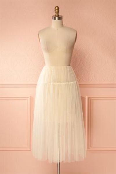 La jupe midi en tulle blanche est souvent réservée pour les événements très élégants, pour les bals ou les soirées glam. Pourtant, en vous inspirant de ce look Olivier Theyskens, vous pouvez agencer la jupe avec une veste de cuir pour casser le look féminin et romantique. Cintrez votre taille avec une ceinture, pour une silhouette très flatteuse, et laissez entrevoir un t-shirt en maille sous la veste. Terminez avec des bottes aux genoux en cuir et une touche de rouge à lèvres nude.