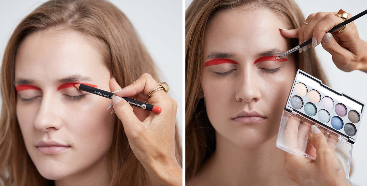 Étape 1: Utilisez un crayon d’une couleur vibrante de votre choix et tracez un trait au dessus de la paupière mobile, suivant l’arc naturel de votre sourcil (Crayon Yeux Éternel – 7,99$)